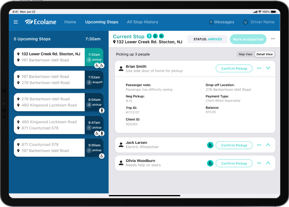 Ecolane, part of the Transit family, specializes in empowering transportation logistics for passengers with expanded needs. Their initial product was not only outdated but also incompatible with the iOS App Store, necessitating a device purchase along with the subscription.